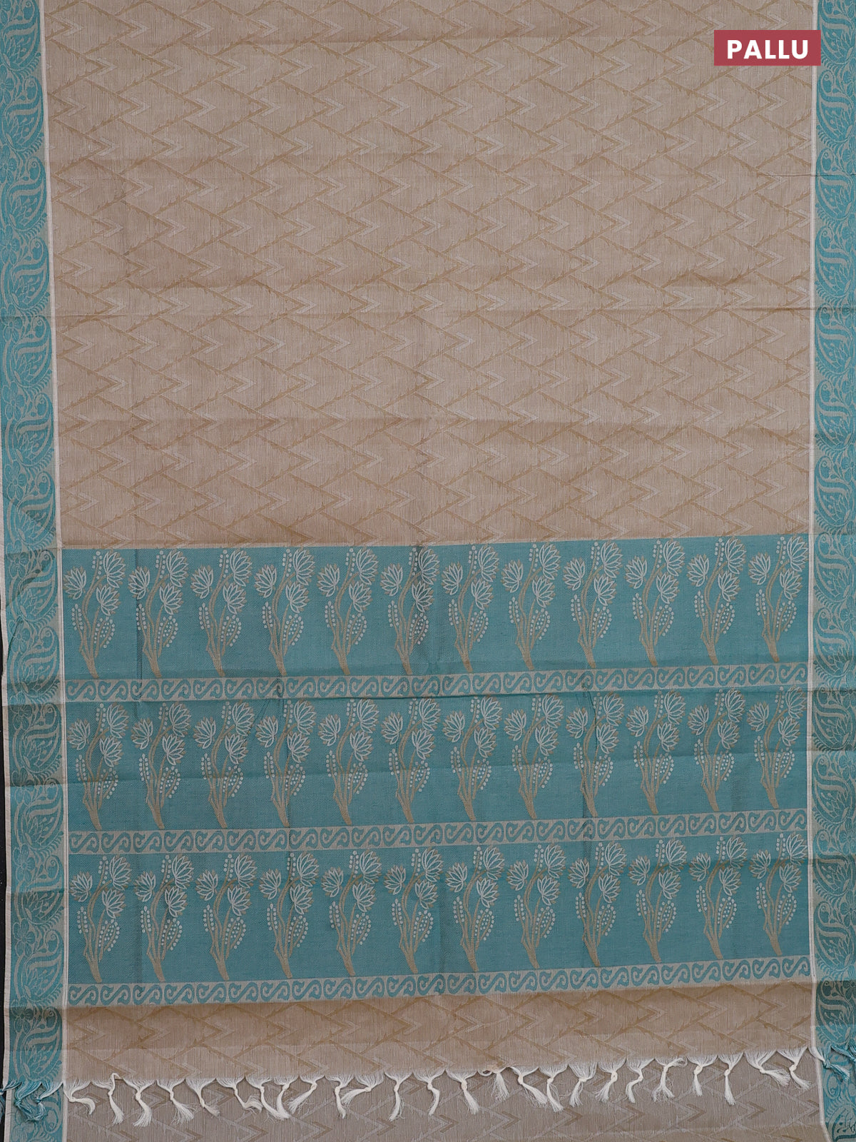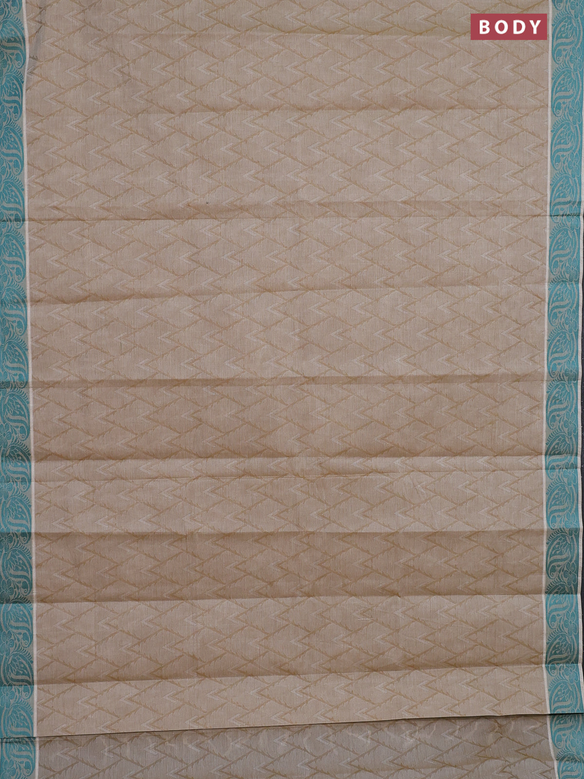 Coimbatore cotton saree dark sandal and teal green with allover self emboss and thread woven border