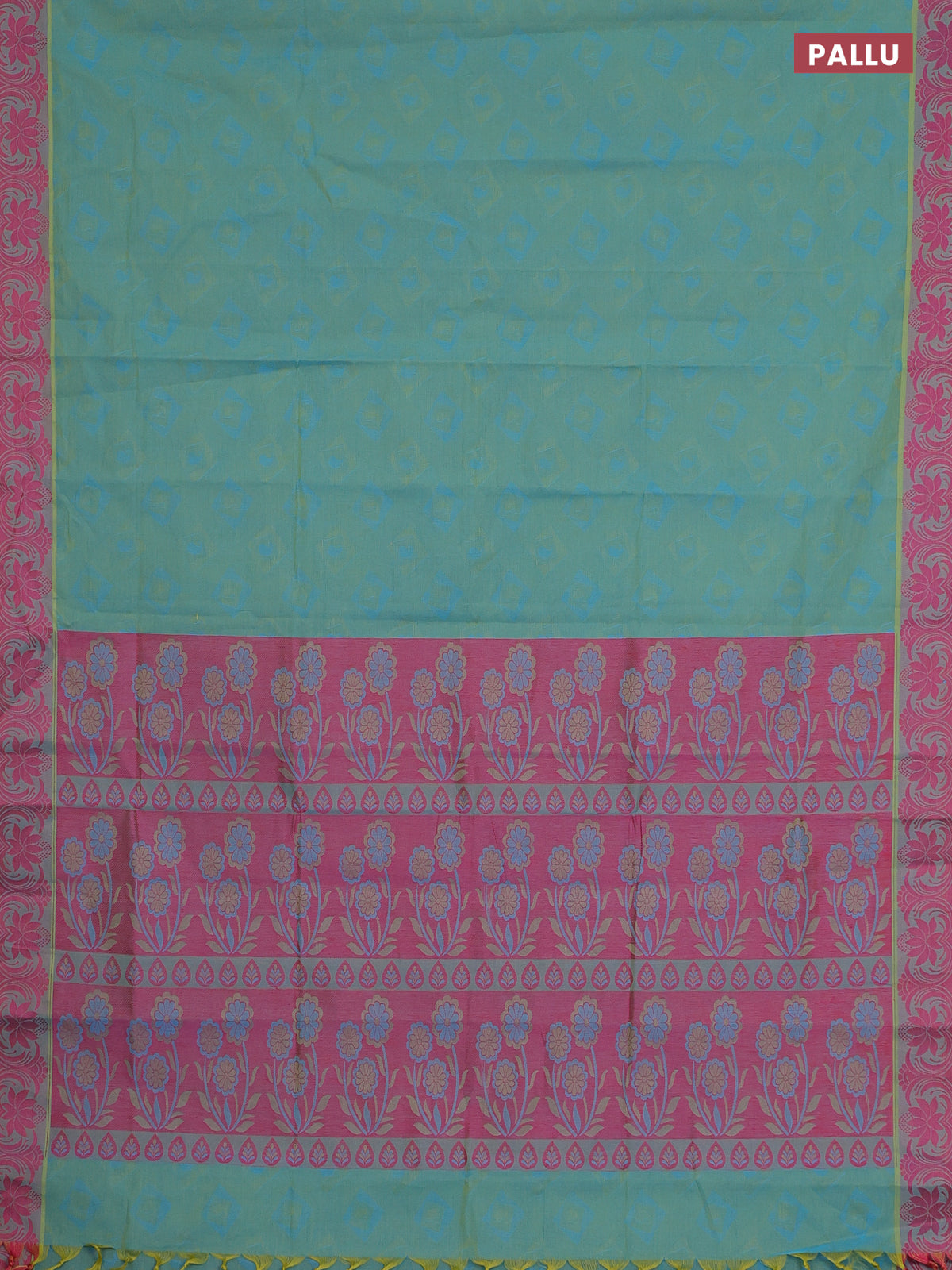 Coimbatore cotton saree dual shade of bluish green and pink with allover self emboss and thread woven border
