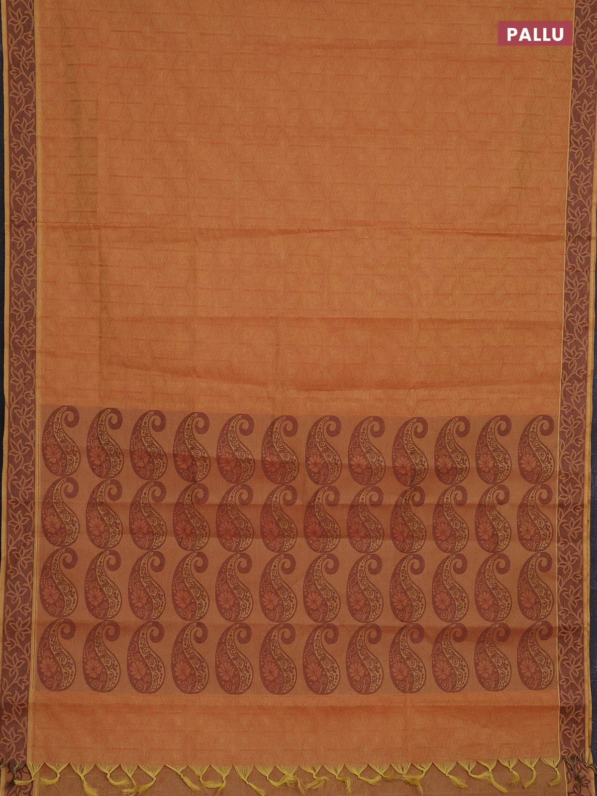 Coimbatore cotton saree dual shade of dark mustard with allover self emboss and thread woven border