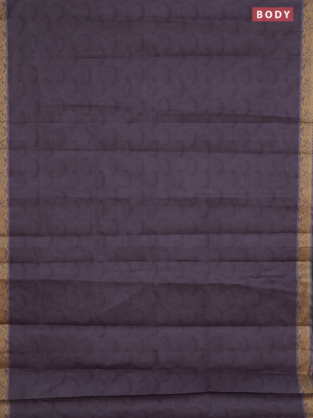 Coimbatore cotton saree grey shade with allover self emboss and thread woven border