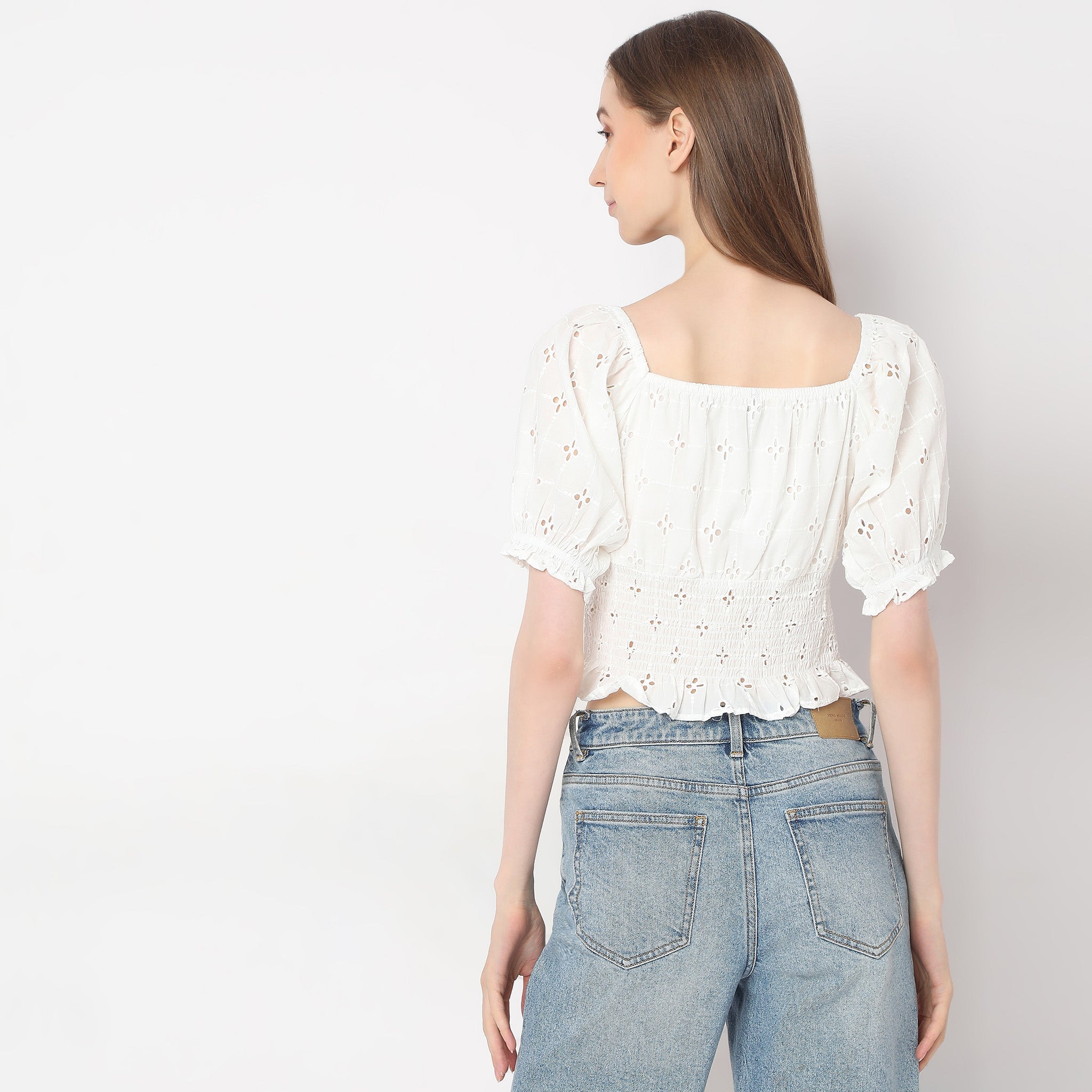 This solid pattern top has a square neck and short sleeve. Made from cotton, it is soft and comfortable to wear.