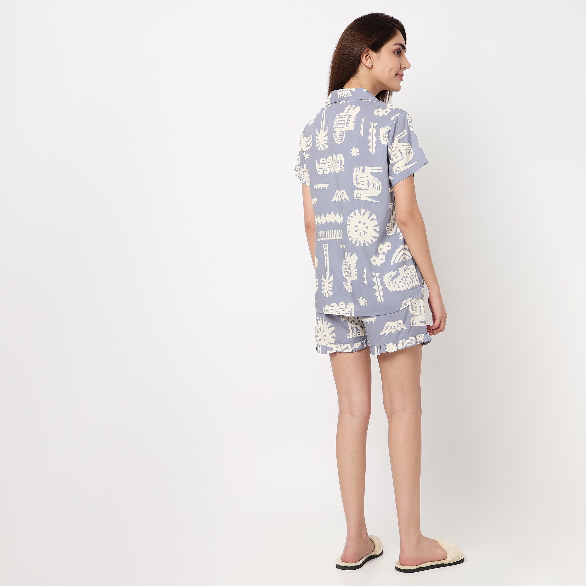 Cotto Printed Shirt with Short Sleepwear Sets