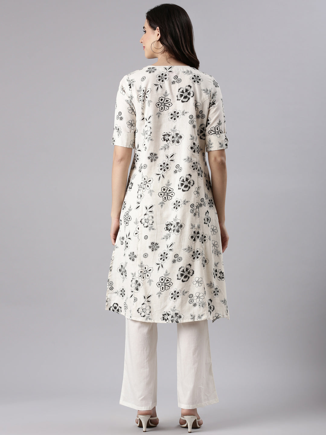 Cream Cotton Flex Printed Kurta