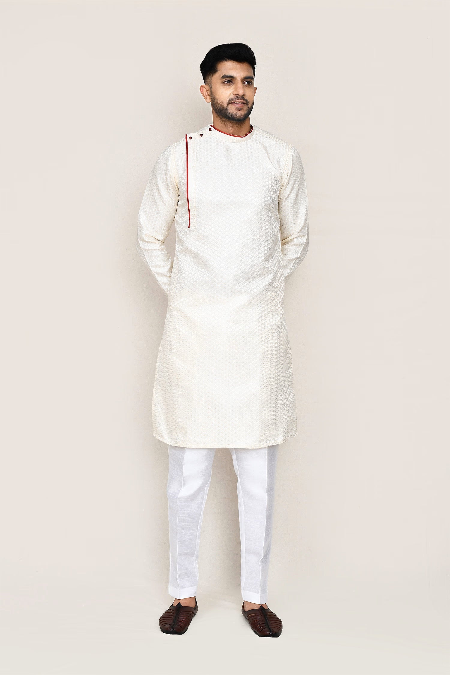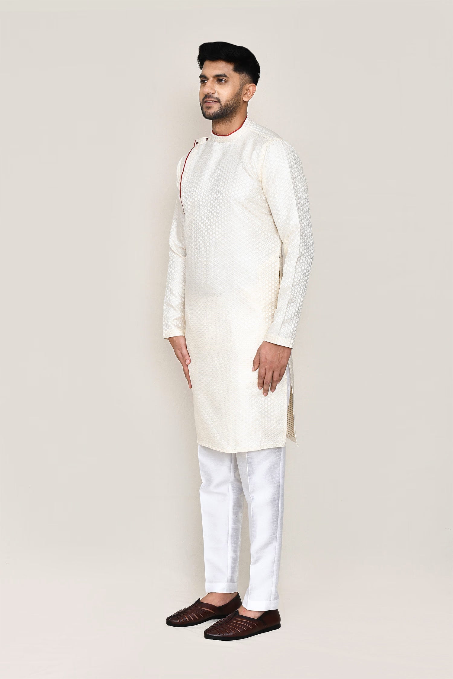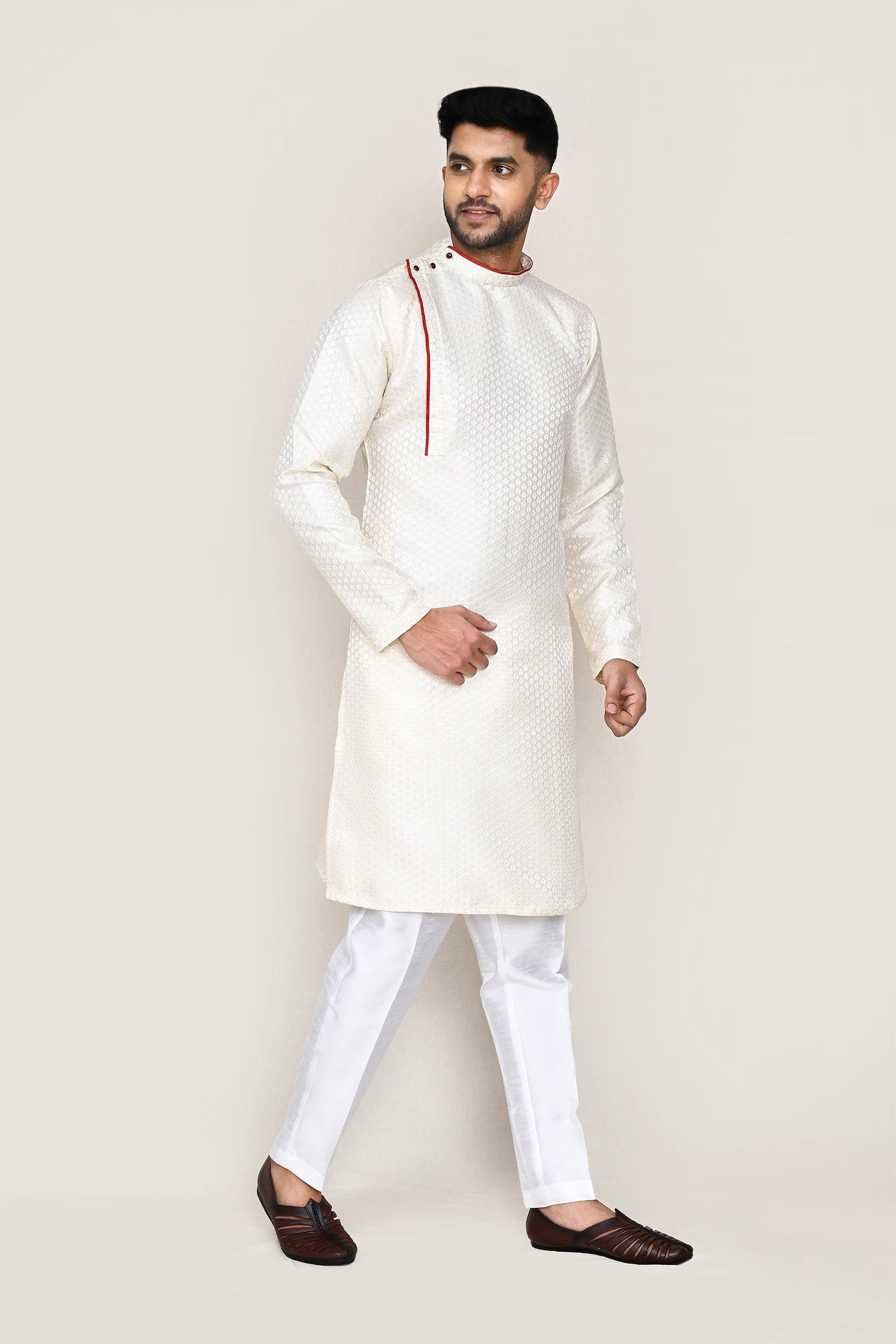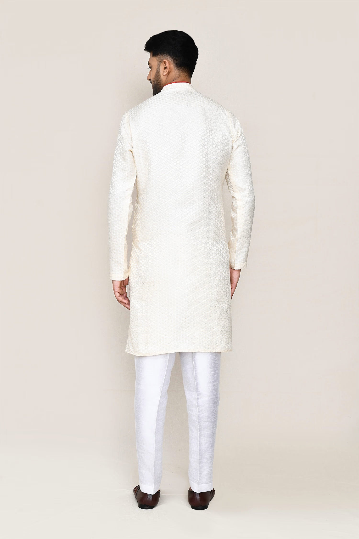 Cream Jacquard Kurta Set