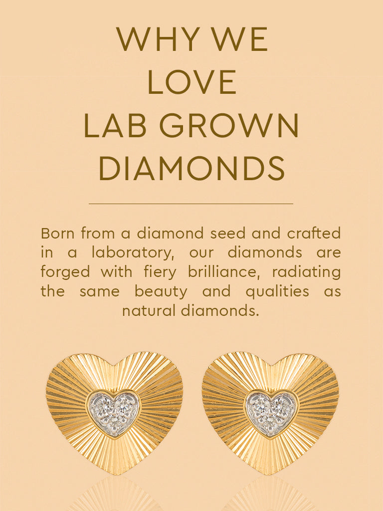 Romance meets refinement in these exquisite heart-shaped studs, crafted from radiant gold vermeil by Westside X Pome. Delicately textured with striped detailing, they create a shimmering halo effect that catches the light beautifully. At the center, a brilliant lab-grown diamond adds just the right touch of sparkle. Perfect for date nights, celebrations, or whenever you want to wear a little love.
