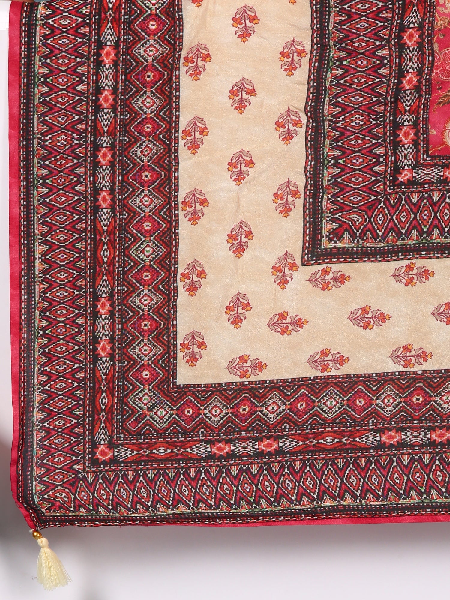 Deep Caramine Dola Silk Printed Three Piece Set