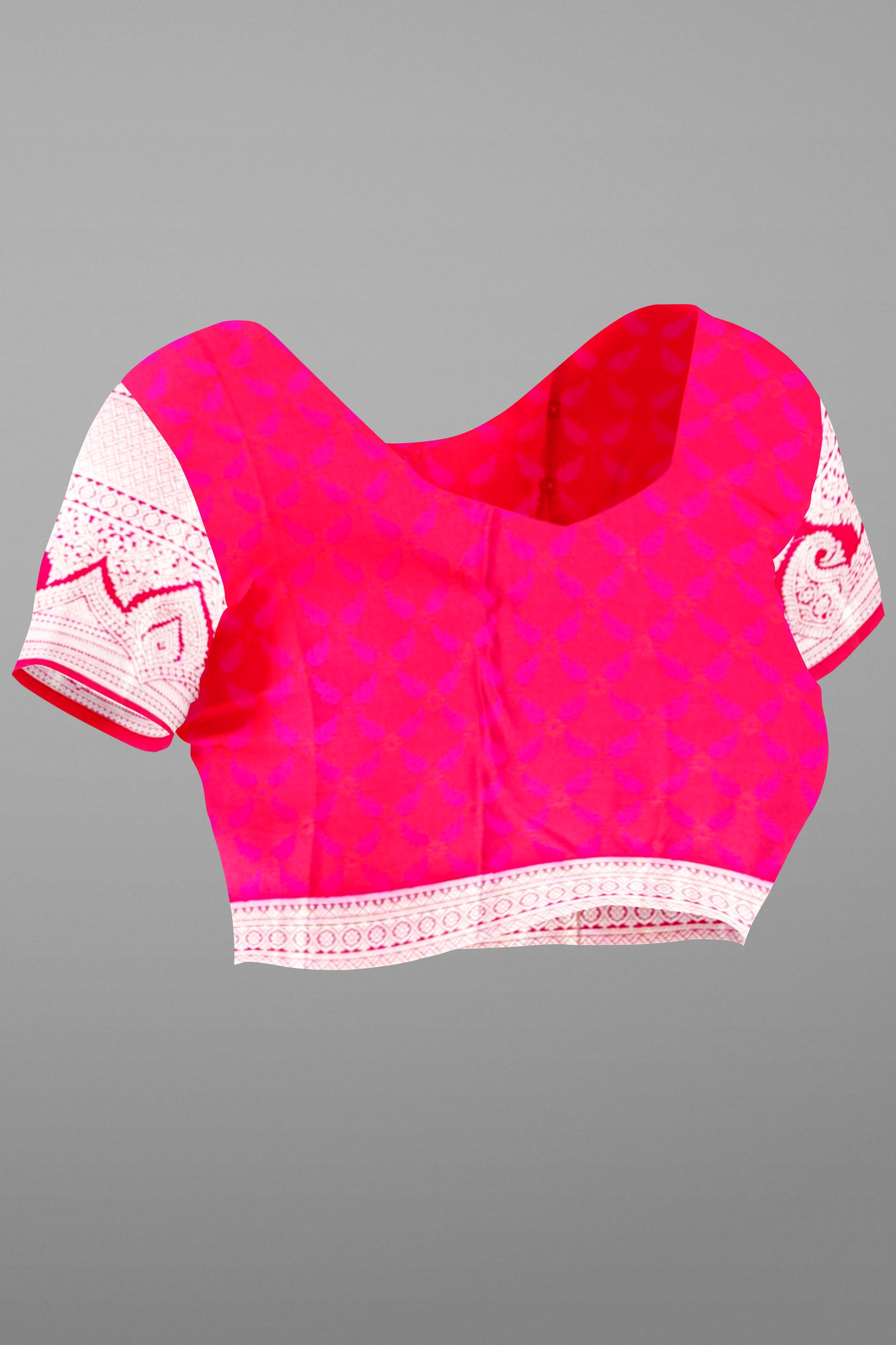 Latest DEEP PINK FLORAL JAAL SILK BLEND Saree with SELF ZARI border. This saree comes with EMBOSE SILK BLEND blouse.