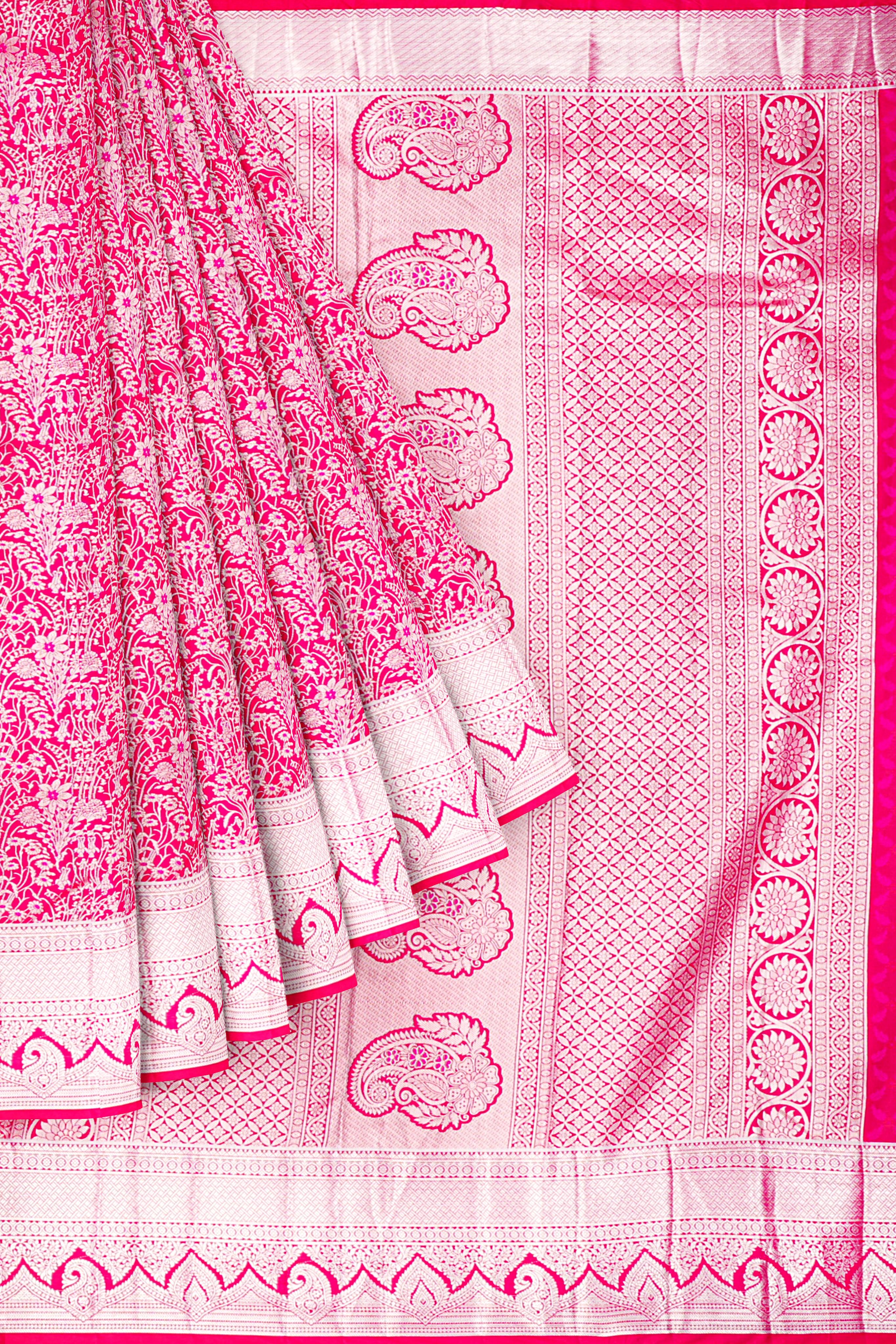 DEEP PINK and SILVER FLORAL JAAL SILK BLEND Saree with SEMI PATTU