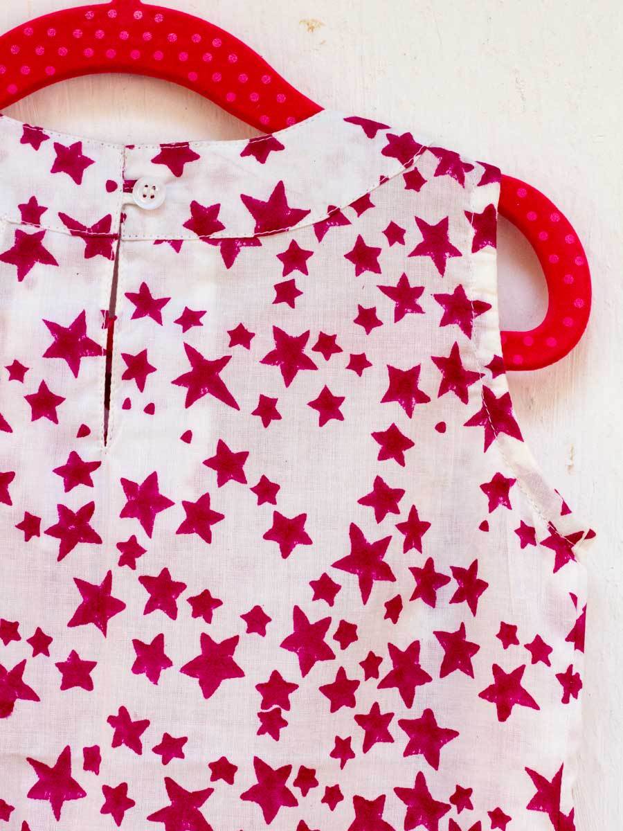 Deep Pink Starry Sky PinTuck Block Printed Cotton Frock