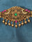 Radiate traditional charm with this antique gold-finish Bajuband, adorned with floral motifs, a striking pink stone centerpiece, green accents, and elegant pearl drops—perfect for festive and bridal wear.