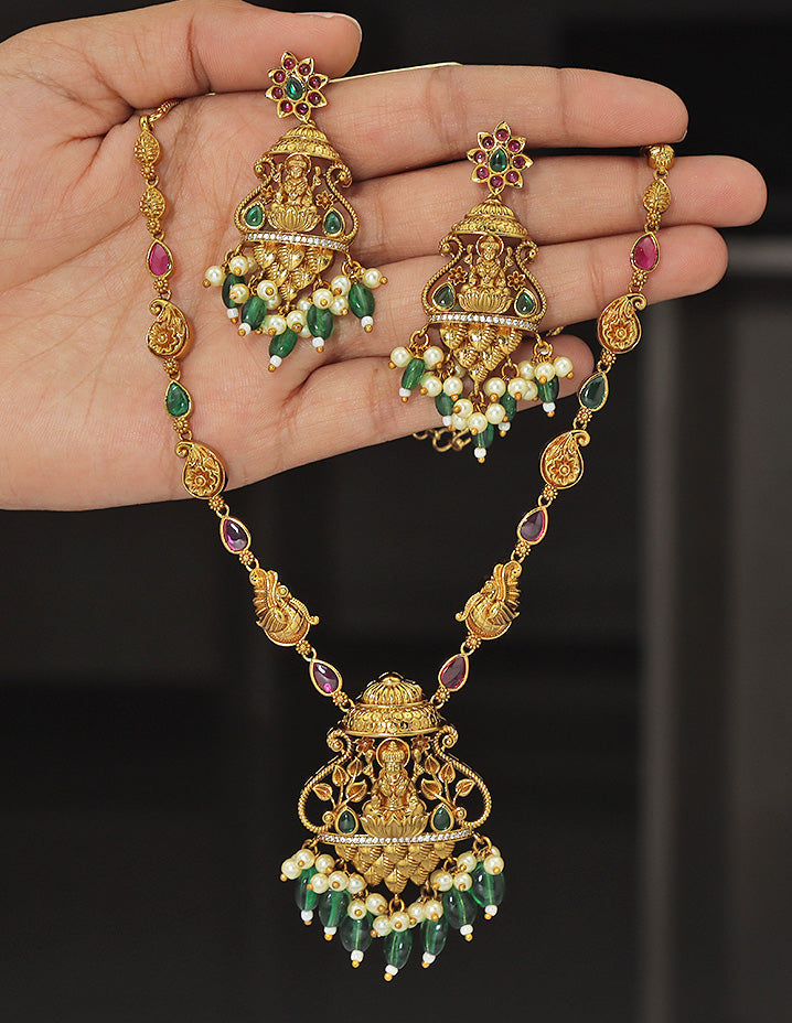 Designer Zirconia Royal Devi Temple Kempu Necklace Set