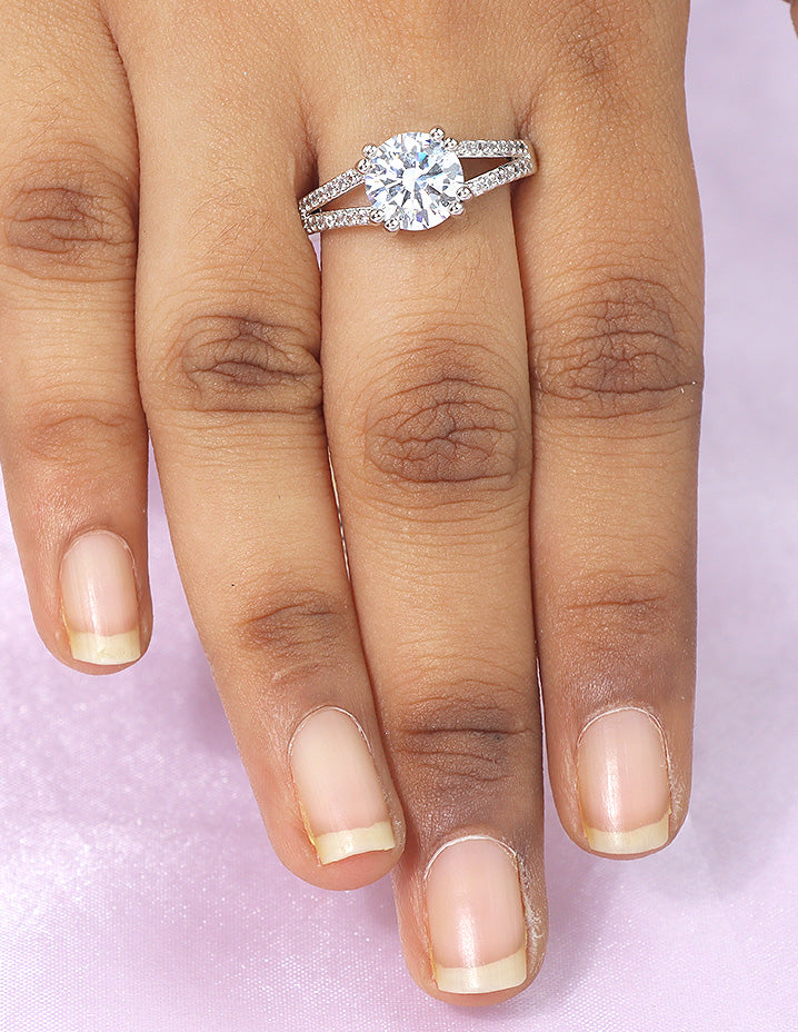 Shine like the star you are! The Starlight Solitaire Ring features a brilliant round-cut stone on a sleek band with delicate side accents — pure sparkle, pure elegance.
