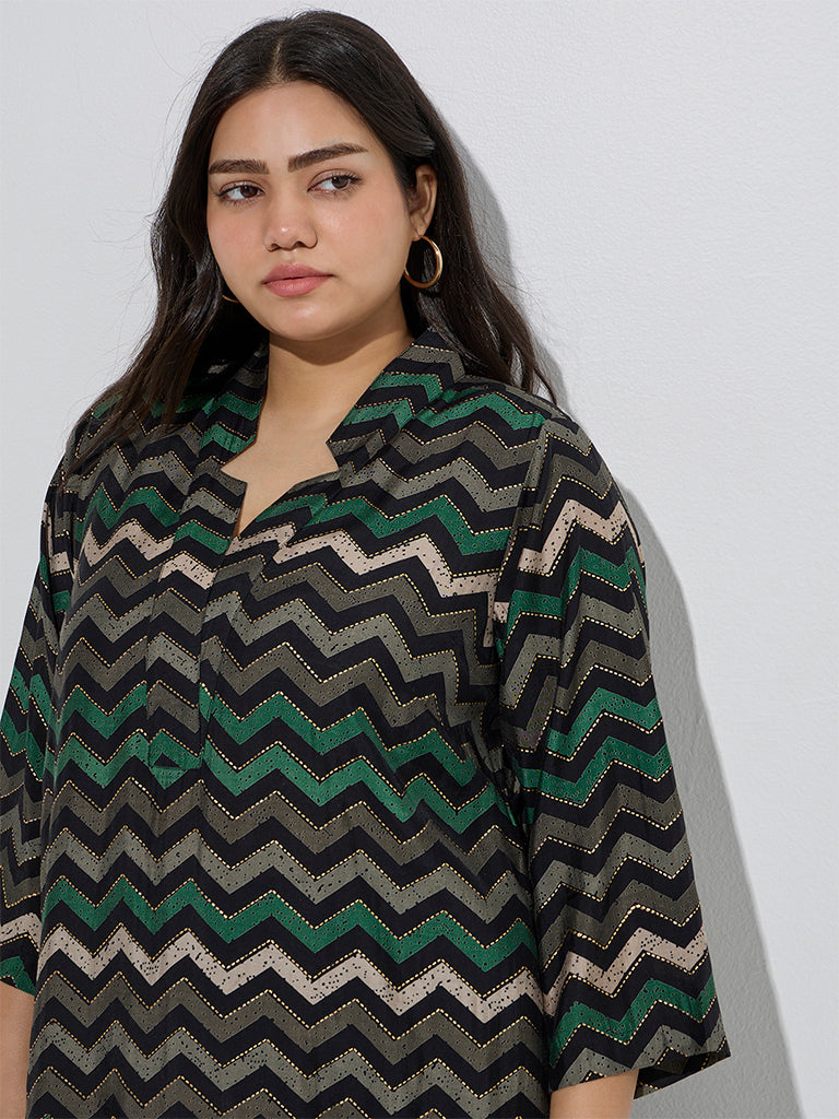 Diza Black Chevron Design A-Line Kurta