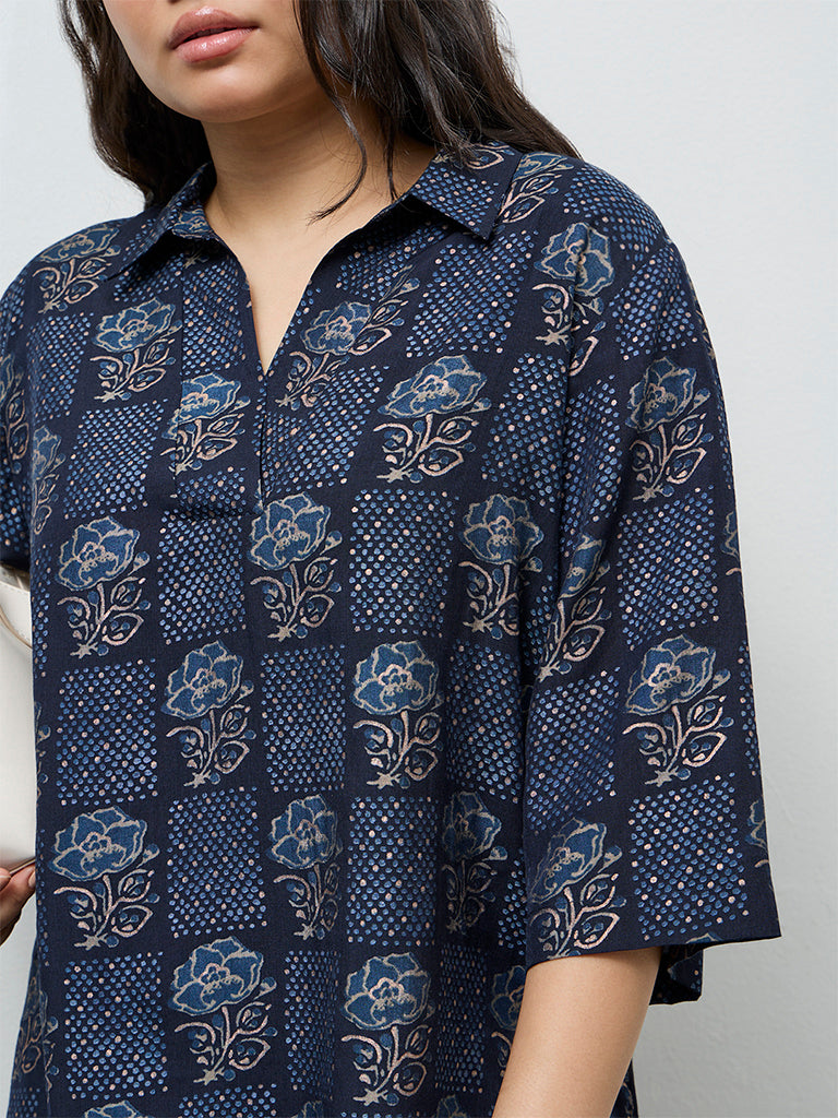 Diza Dark Blue Floral Printed High-Low Tunic