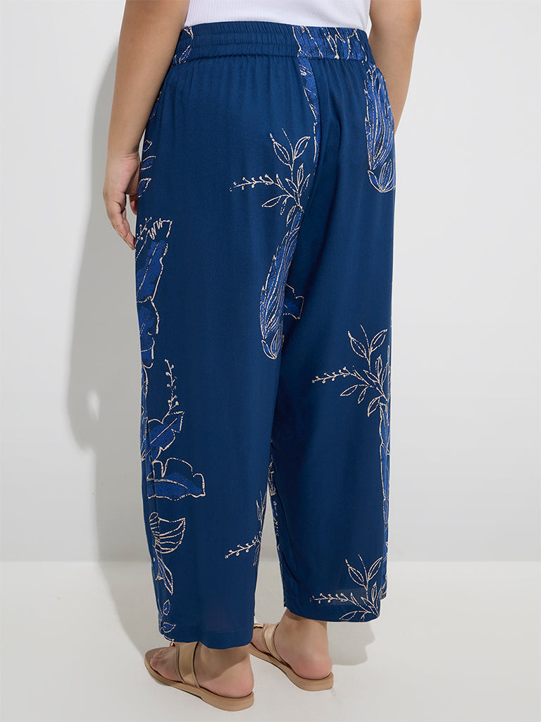These indigo ethnic pants from Diza bring a playful twist to everyday styling with their lively botanical prints. Cut from a feather-light fabric, they offer ease without compromising on personality. The elasticated waistband is finished with adjustable drawstrings for a custom fit, while side pockets lend a dose of functionality.