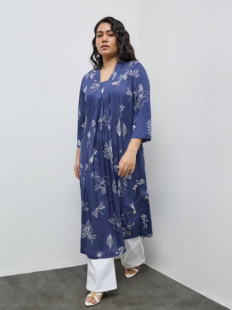 Diza Indigo Garden-Themed A-Line Kurta