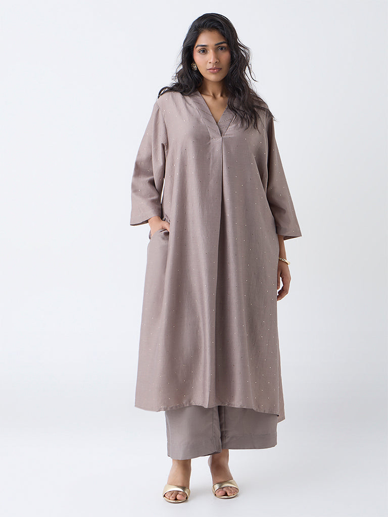 Add a refined edge to your festive edit with these taupe ethnic pants from Diza. Designed with an elasticated waistband and side pockets for ease, they balance comfort with sophistication.
