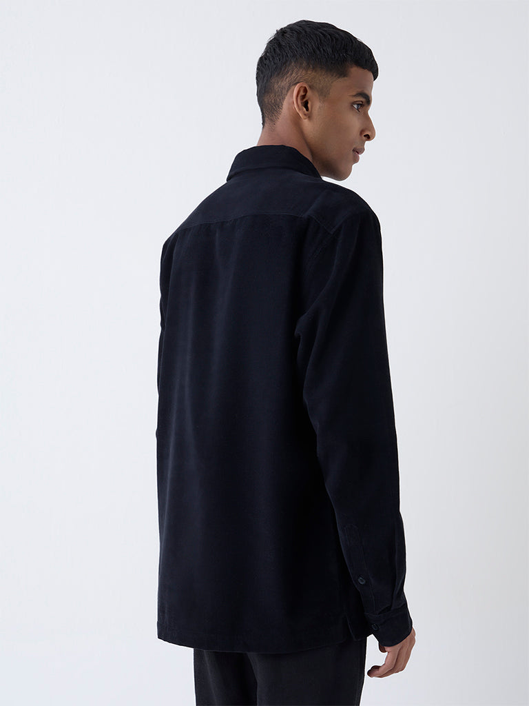 ETA Black Embroidered Relaxed-Fit Cotton Shirt