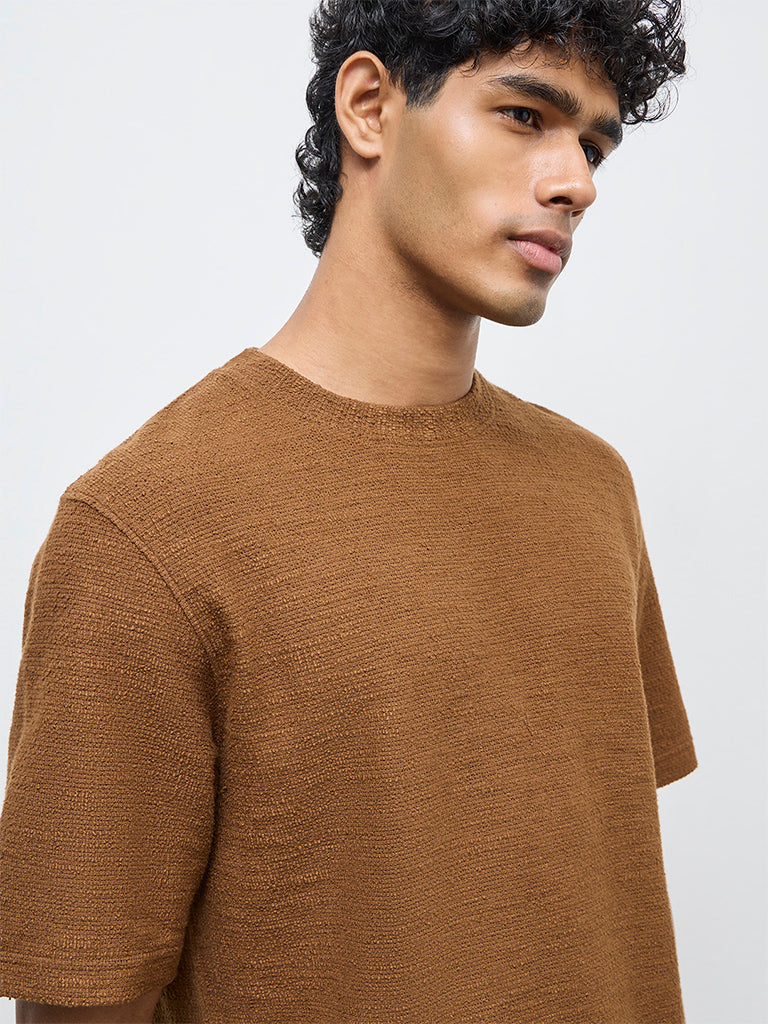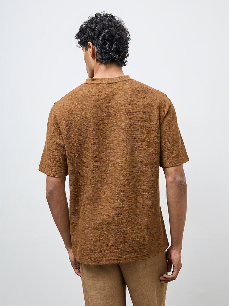 ETA Brown Textured Relaxed-Fit Cotton-Blend T-Shirt