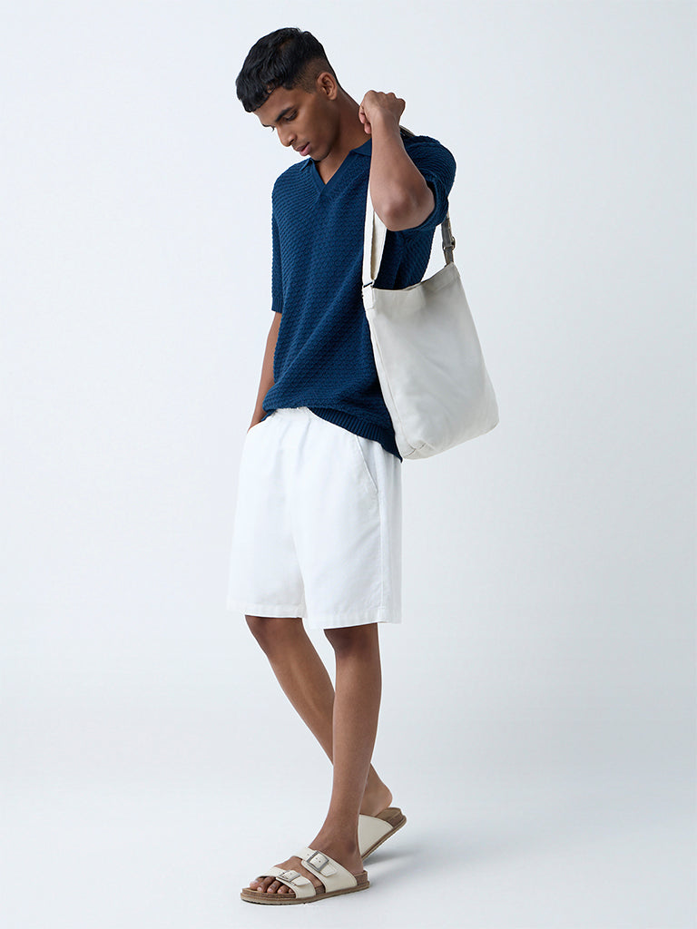This indigo polo t-shirt from ETA brings elevated ease to your casual edit. Made from a soft knit-textured fabric, it’s shaped in a relaxed silhouette that moves with you. The clean V-neck collar offers a refined alternative to traditional polos, while short sleeves complete the style.