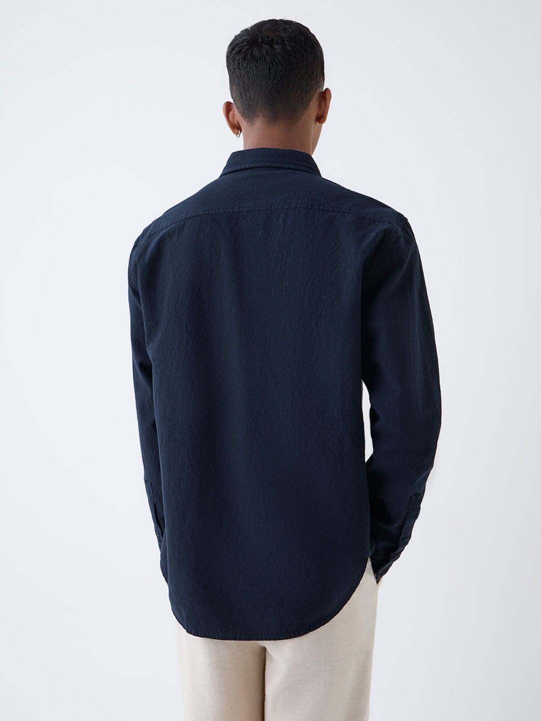 ETA Navy Solid Relaxed-Fit Cotton Shirt