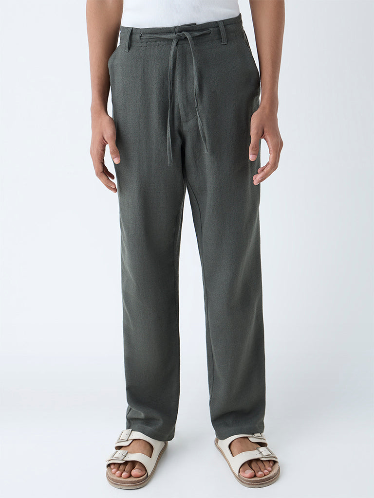 Cut in a relaxed silhouette, these olive chinos from ETA are designed for all-day ease. Its breathable composition offers everyday comfort, while the buttoned waistband, adjustable drawcords, belt loops, zip fly, and multiple pockets deliver utility with polish.