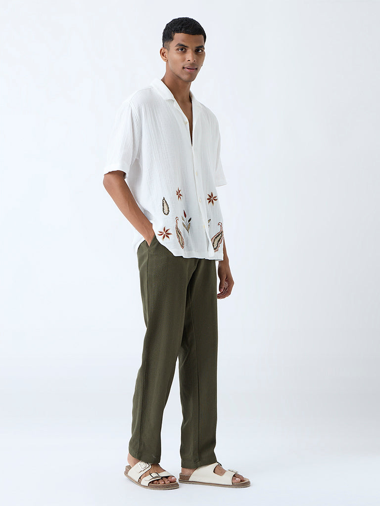 ETA White Floral Embroidered Relaxed-Fit Cotton Shirt
