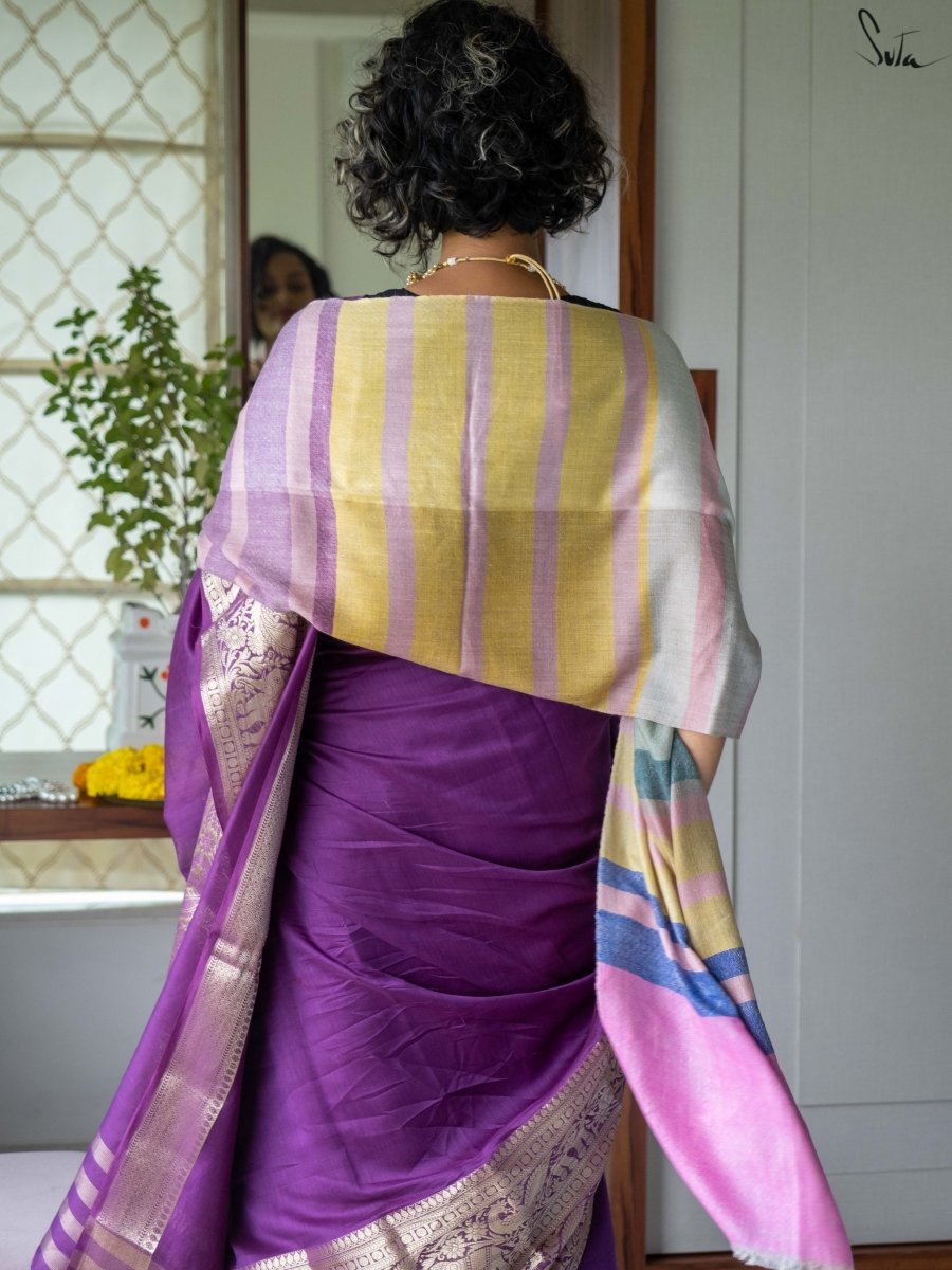 Saree  Su, the model is wearing a saree called Royal Penchant and a blouse called Tami.