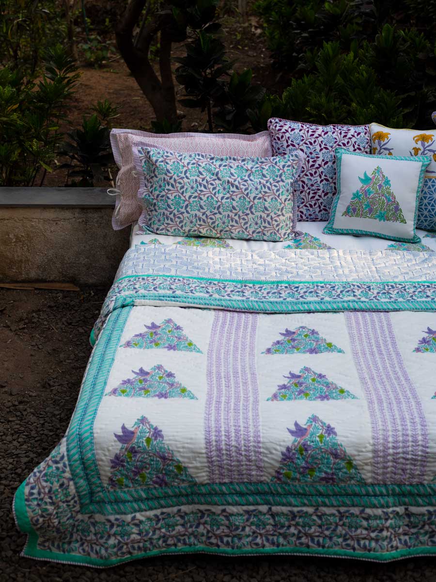 A sight to behold! A sea of purple lavenders under the brilliant blue sky, speckled with tall bright yellow sunflowers, and a mesmerizing scent that transports you far and beyond. Such is the magical effect of these lush fields of lavender that inspire this collection. Each motif has been thoughtfully designed to leave you with a feeling of purity, grace, and joyful calmness. A favorite amongst the royals and the hopeless romantics, the gorgeous lavender is also associated with the crown chakra, the meeting point of your physical and metaphysical self.
