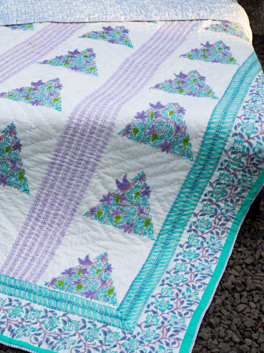 Comes in a fabric care bag. When not in use, fold neatly and store the quilt in the care bag. We suggest airing the quilt first time before use.