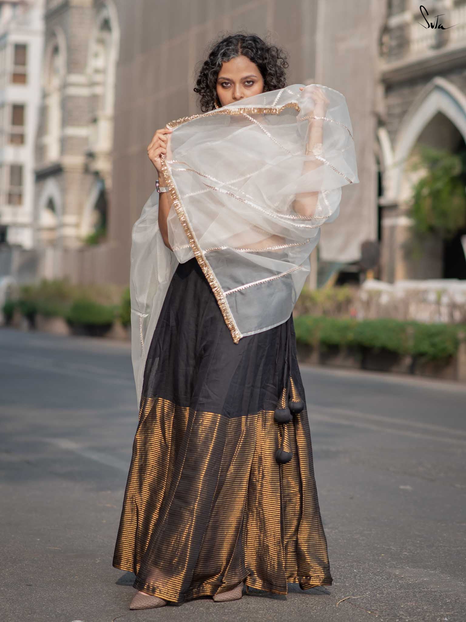 The moon called and asked for its glow back. Fizai Chandni’s off-white organza is pure celestial wonder. Draping it is like wearing a halo of moonlight unapologetically radiant and a total showstopper.