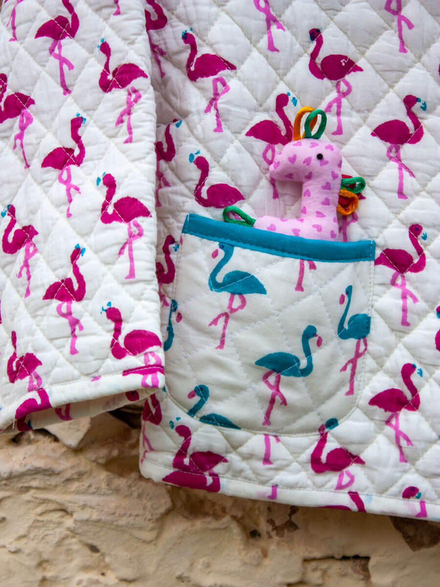 Flamingo Quilted Organic Cotton Block Printed Angrakha Set