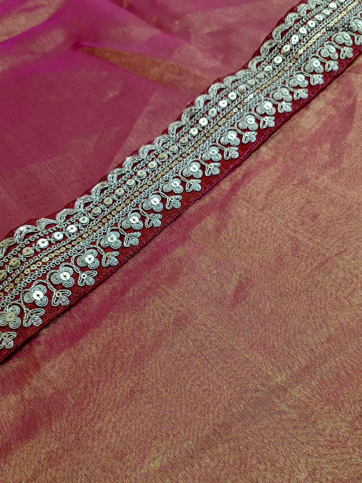 The Chanderi fabric, which combines pure silk on the warp and zari on the weft, radiates light from within and stands out in the most delicate way. The sarees are painstakingly handwoven, with master weavers dedicating a few days to each piece. In fact, the tradition of Chanderi weaving dates back to the 13th century. In the 1350s, Kosthi weavers migrated to Chanderi, a town in Madhya Pradesh, from Jhansi, from where they propagated this weave. It is said that the royals of several dynasties famously favoured Chanderi fabrics for their richness and utility in the searing hot summers of the plains. Suta has further added to the festive allure of the fabric with delicate embroidered lace embellishments.