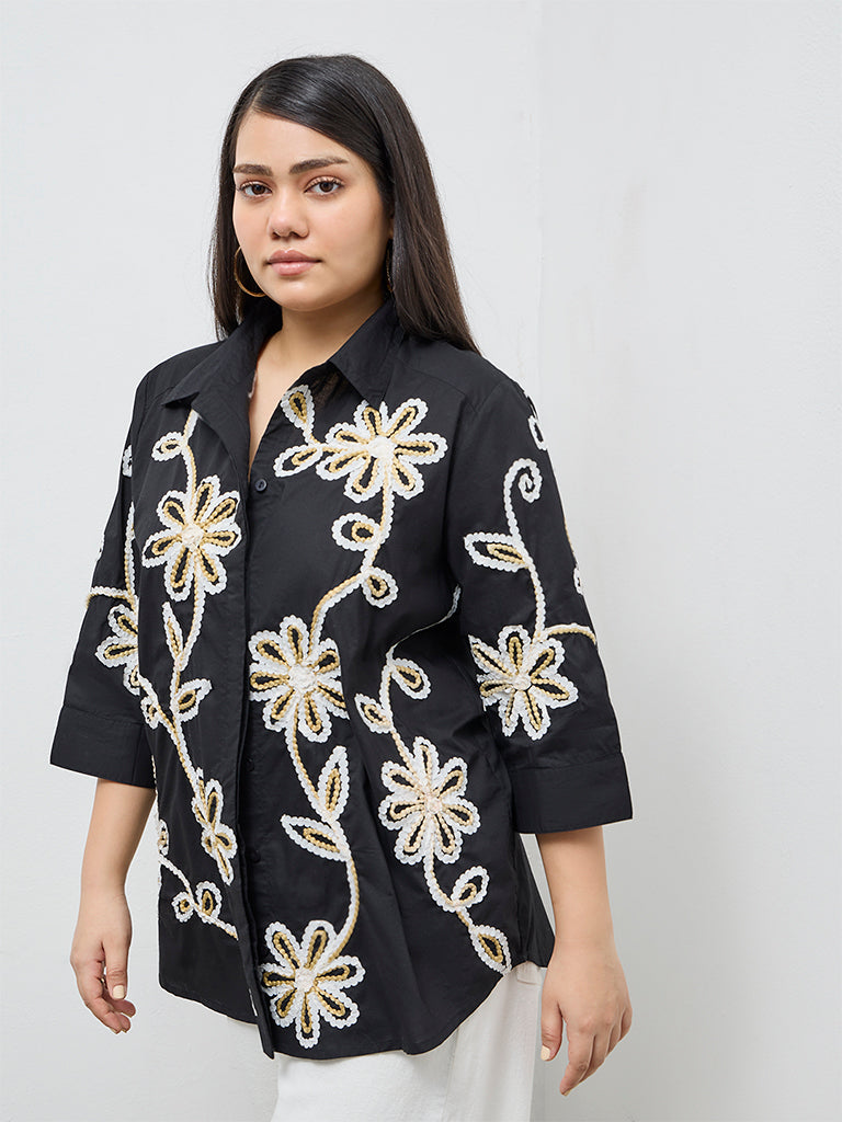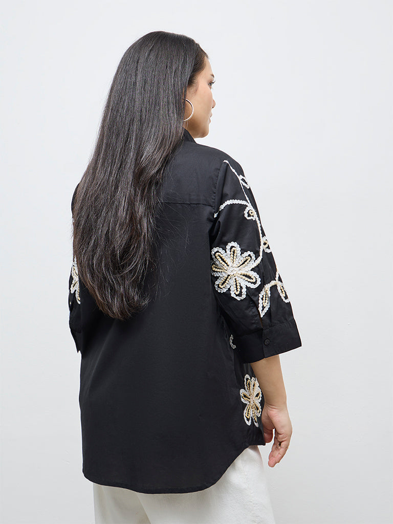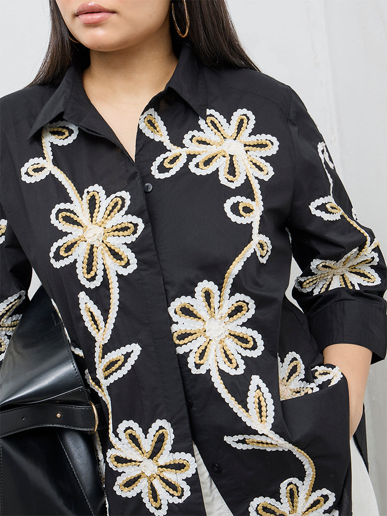 Gia Black Floral Embroidered Cotton Shirt