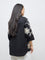 Add a refined edge to everyday dressing with this black shirt from Gia, crafted from premium fabric and elevated with delicate floral embroidery throughout. Designed with a classic collar, a neatly concealed button placket, and 3/4th sleeves, it blends feminine detail with modern structure.