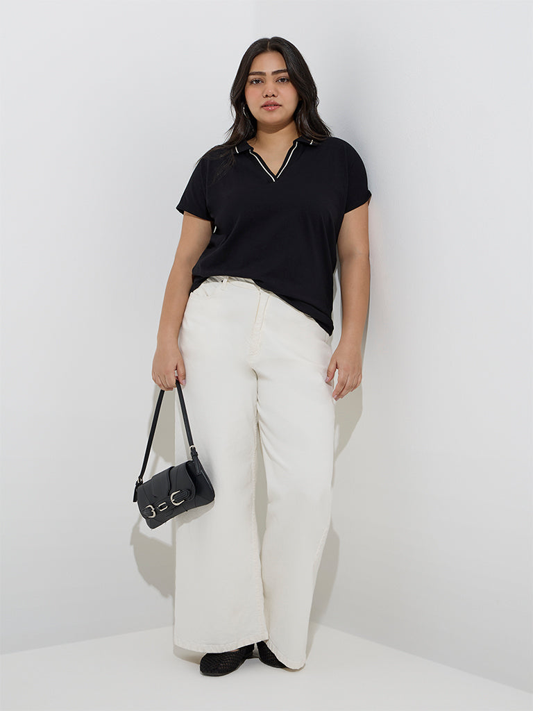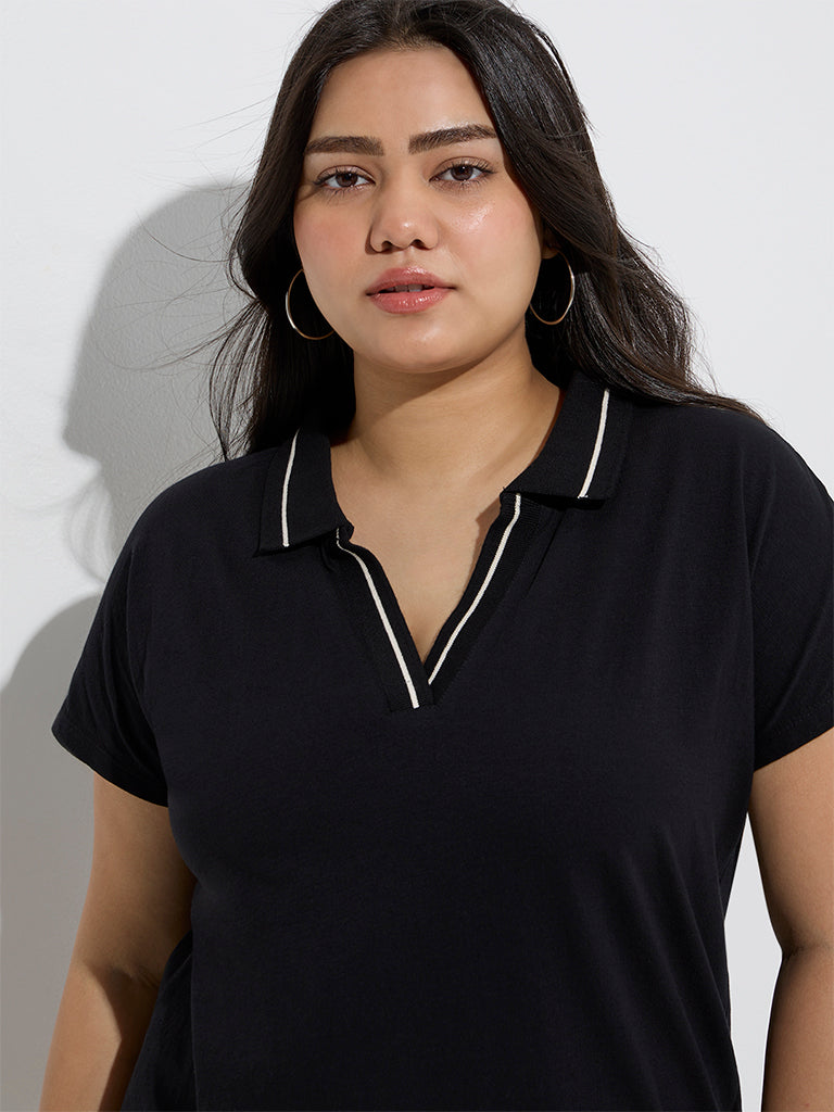 Gia Black Solid Cotton Polo T-Shirt