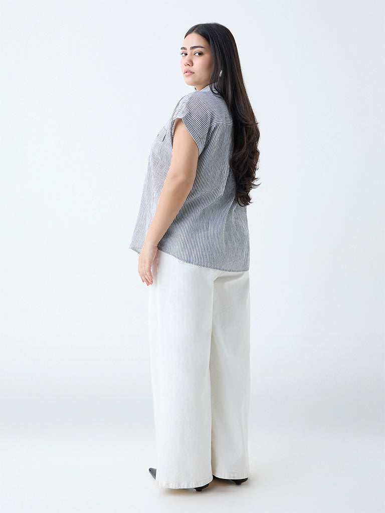 Lend a touch of effortless sophistication to your wardrobe with this black striped shirt from Gia. Designed with a sharp collar, button placket and relaxed dolman sleeves, it’s finished with dual front pockets in a cotton-rich fabric build for all-day comfort.