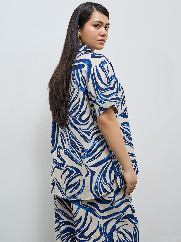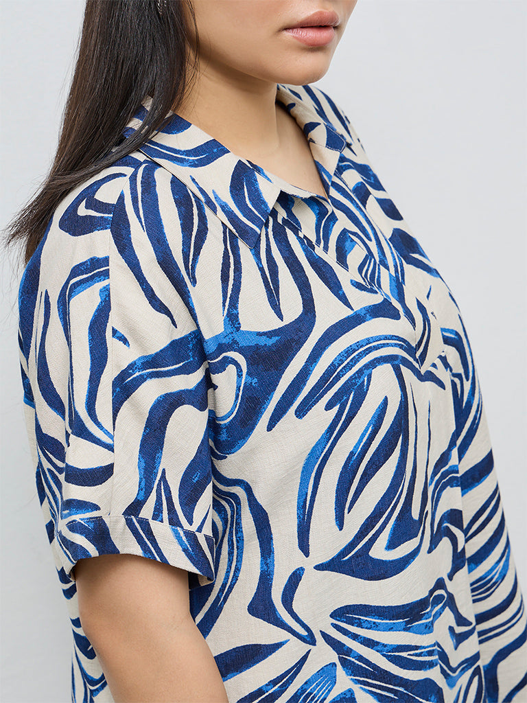 Gia Navy Abstract Design Blouse