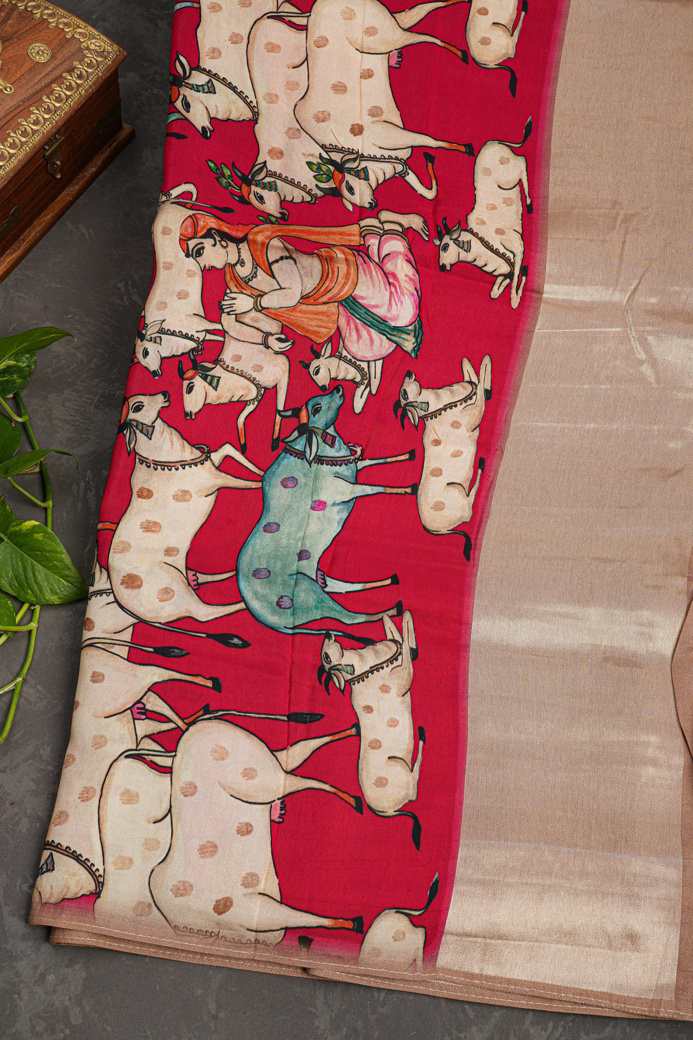GREEN and DARK PINK DIGITAL PRINT SILK Saree with BANARASI FANCY