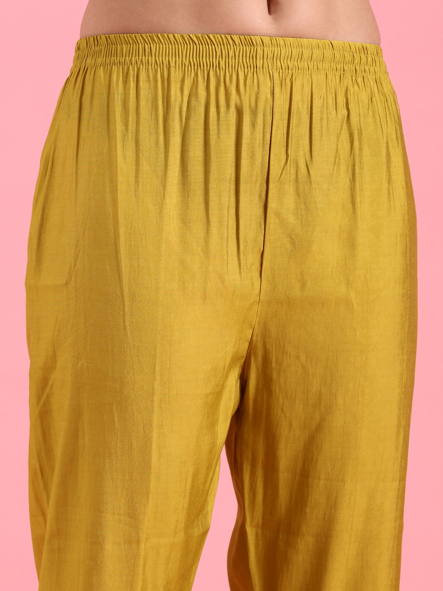 Elevate your wardrobe with this Green Chanderi Embroidery Aline Three Piece Suit Set. Crafted from delicate Chanderi fabric, it features intricate embroidery that adds timeless elegance. The Aline cut offers a graceful silhouette, while the coordinating pieces provide versatile styling options for both formal and festive occasions. Perfect for those who appreciate refined craftsmanship and sophisticated style.