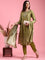 Elevate your traditional wardrobe with this green organza three-piece set featuring delicate printed patterns and intricate embroidery. Lightweight and breathable, this ensemble combines elegance and comfort, perfect for festive occasions or special gatherings. The coordinated pieces offer versatility while ensuring you stand out with subtle sophistication.