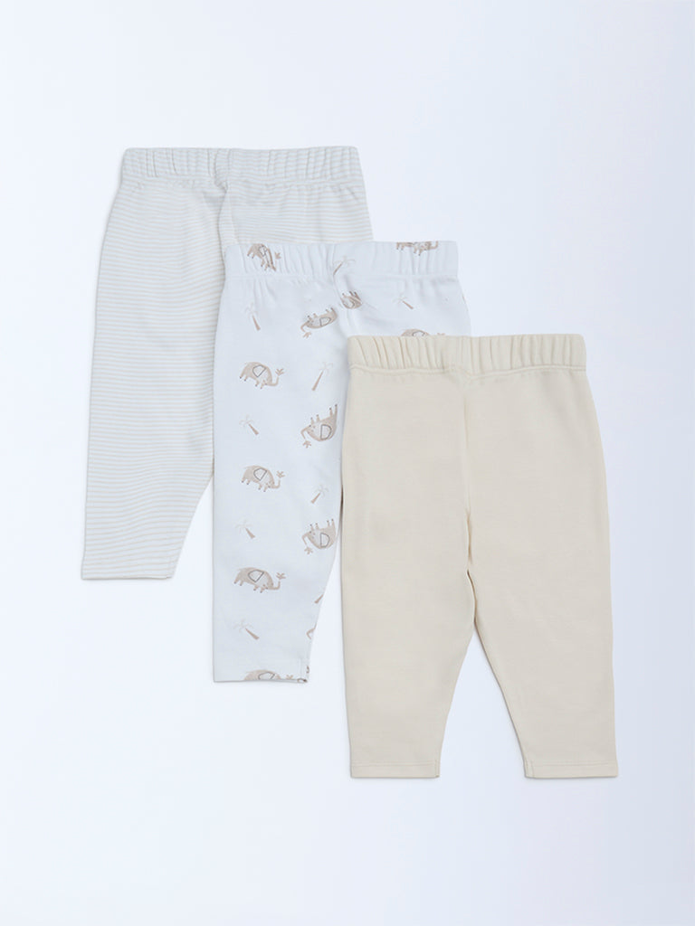 HOP Baby Boys Beige Printed Mid-Rise Cotton Pants - Pack of 3