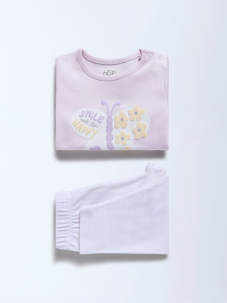 HOP Baby Lilac Printed Cotton T-Shirt and Pants Set - Exclusive