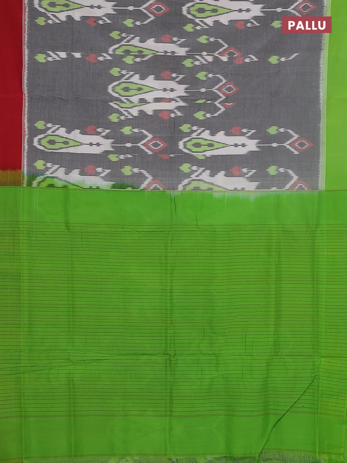 Ikat cotton saree grey with allover ikat weaves and ganga jamuna border