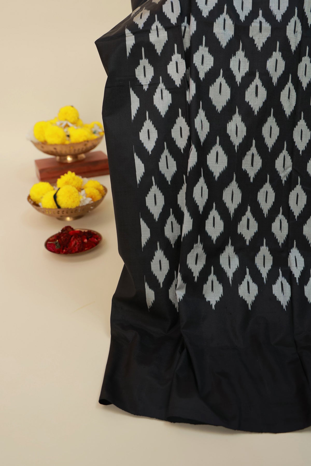Embodying tradition and cultural heritage, our exquisite Ikat Silk Yellow Saree exudes festive elegance. Intricately woven cross lines elevate its grace, complemented by a plain contrast border that evokes a divine charm. Complete with a brocade pallu and a contrast with border border blouse, this ensemble captures the essence of festivity with timeless sophistication.