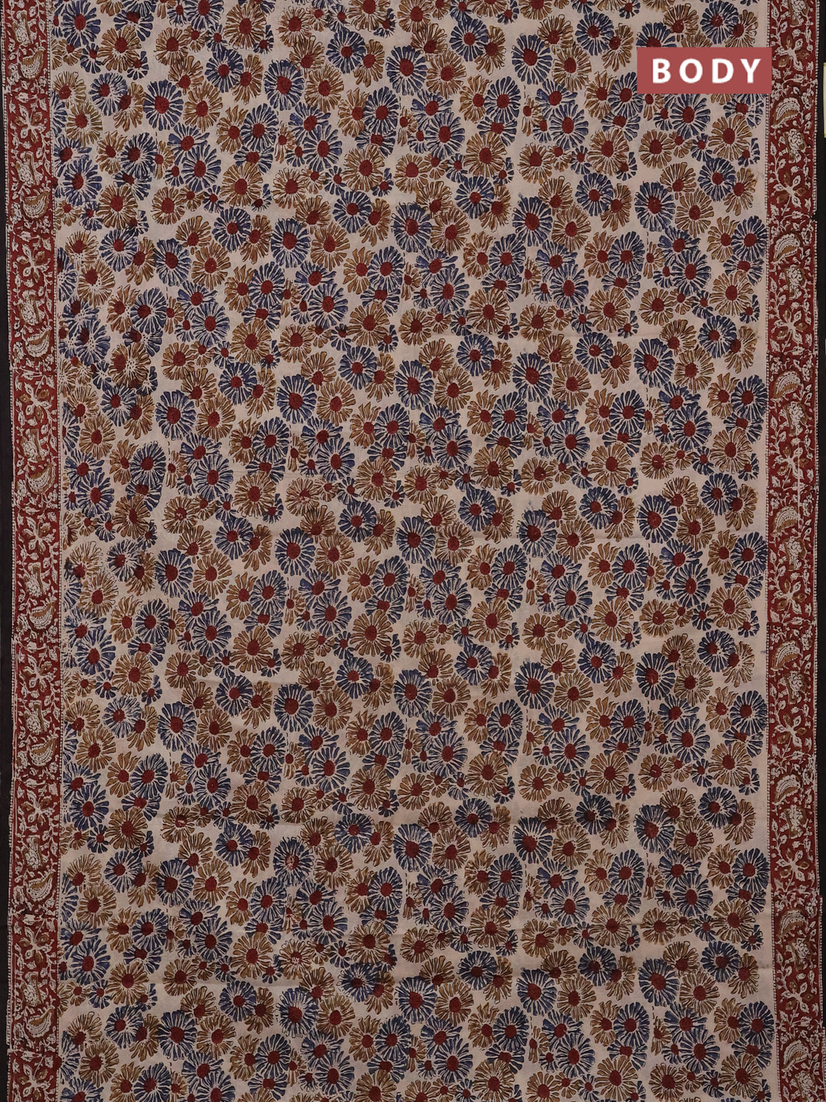 Jaipur cotton saree beige and marron with allover kalamkari prints and printed border