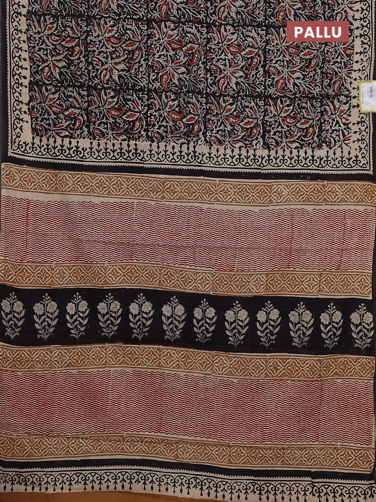 Jaipur cotton saree black and beige with allover kalamkari prints and printed border