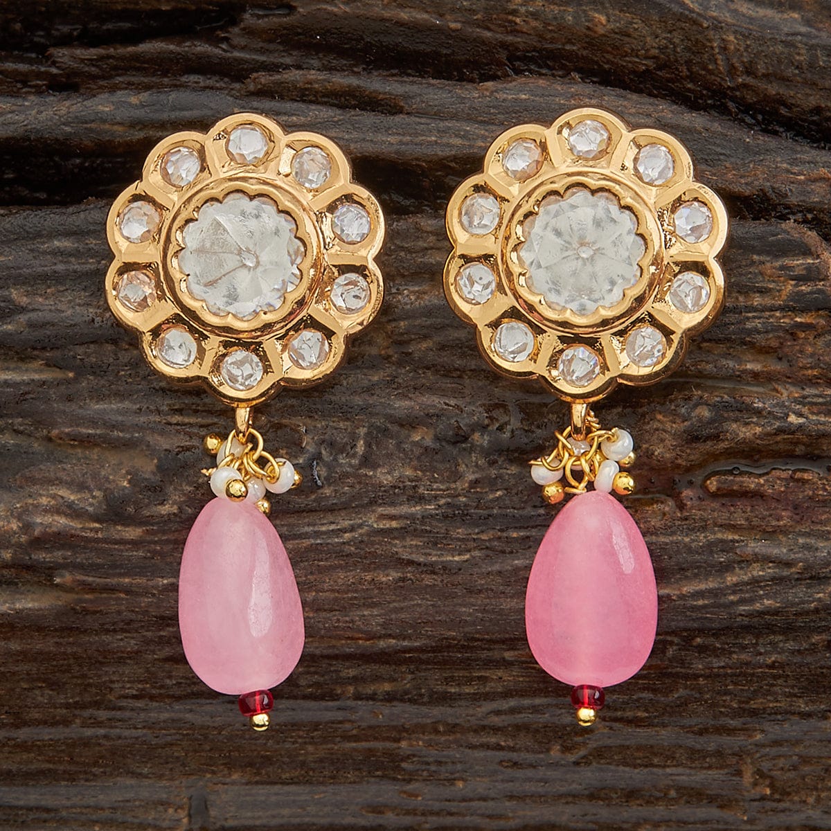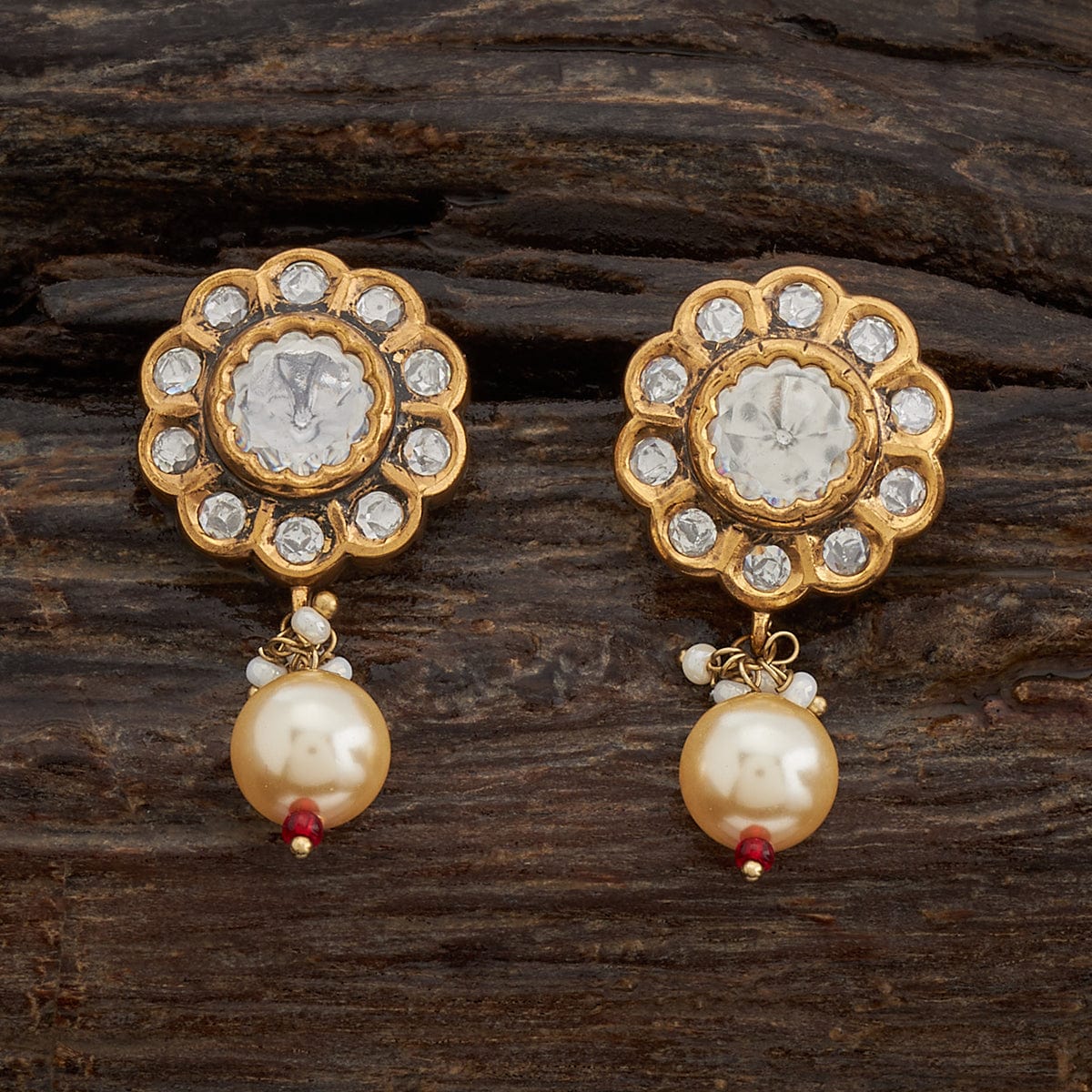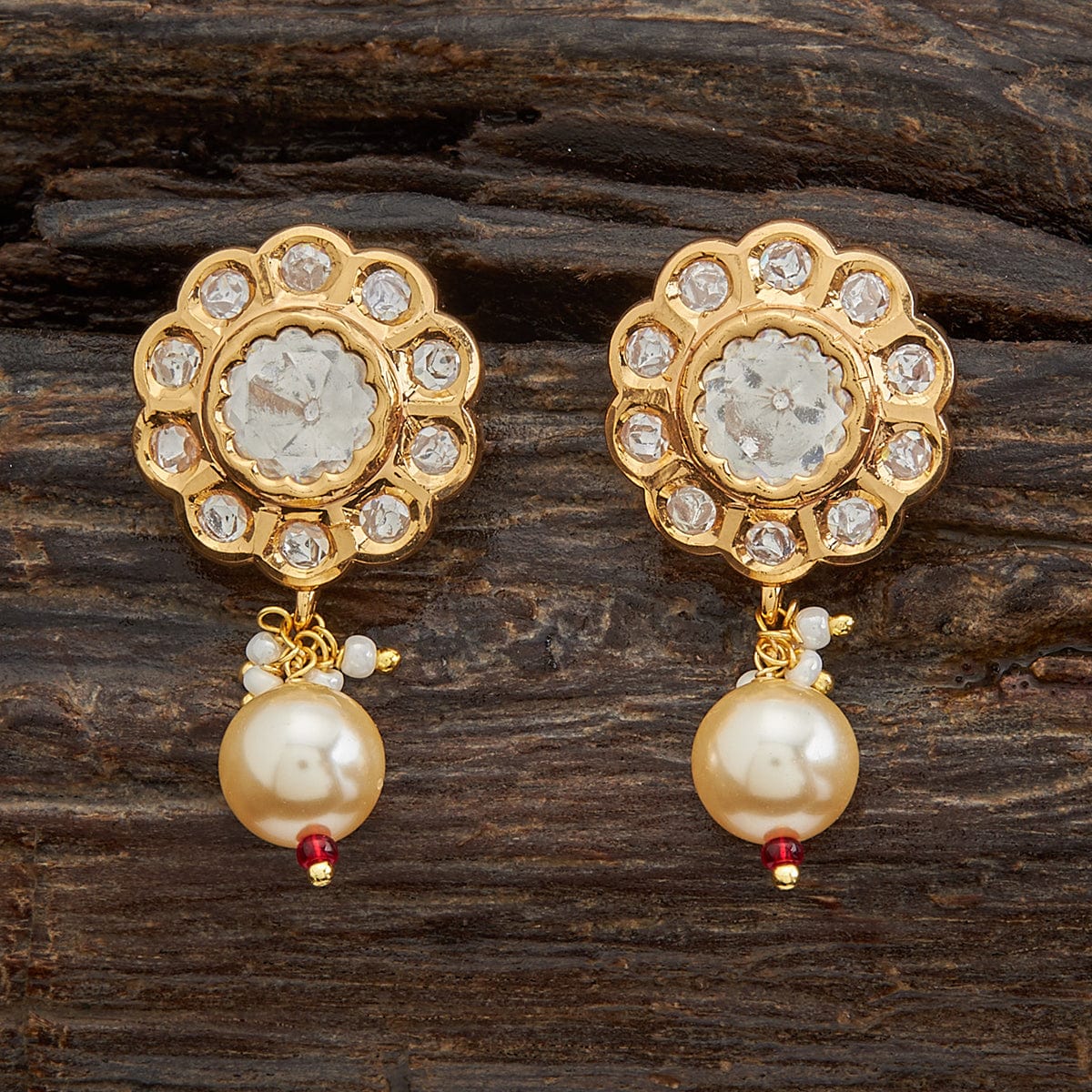 Kushal's Fashion Jewellery Flower Motif Kundan Earring