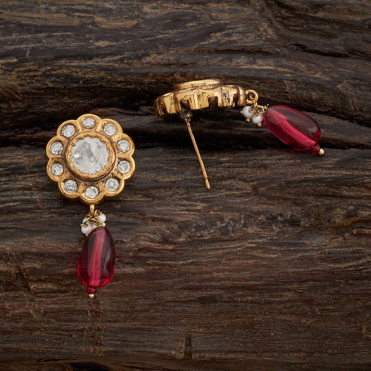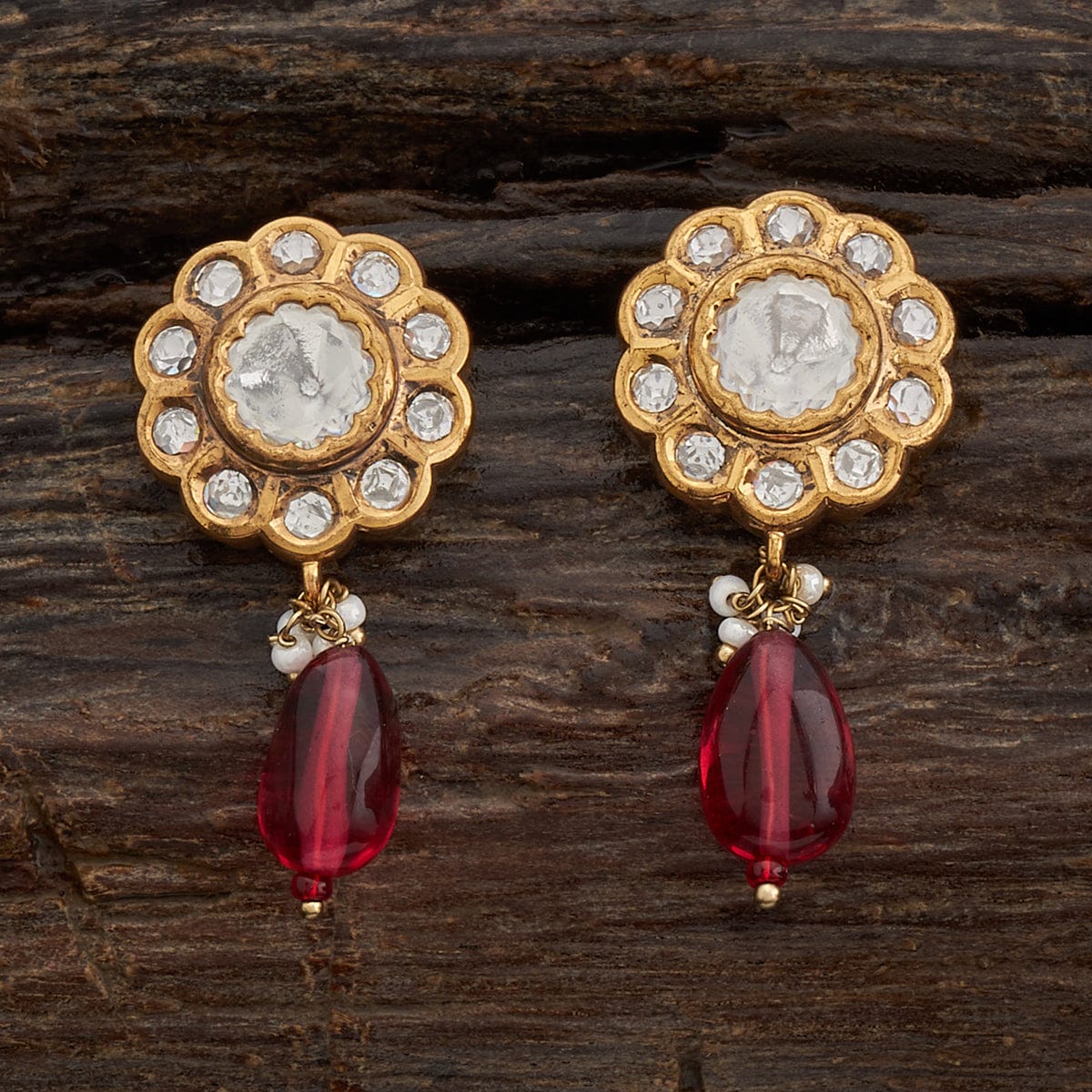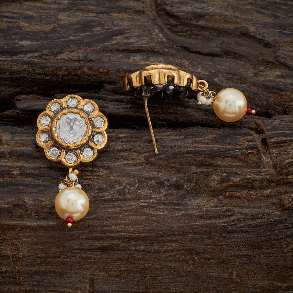Kushal's Fashion Jewellery Flower Motif Kundan Earring