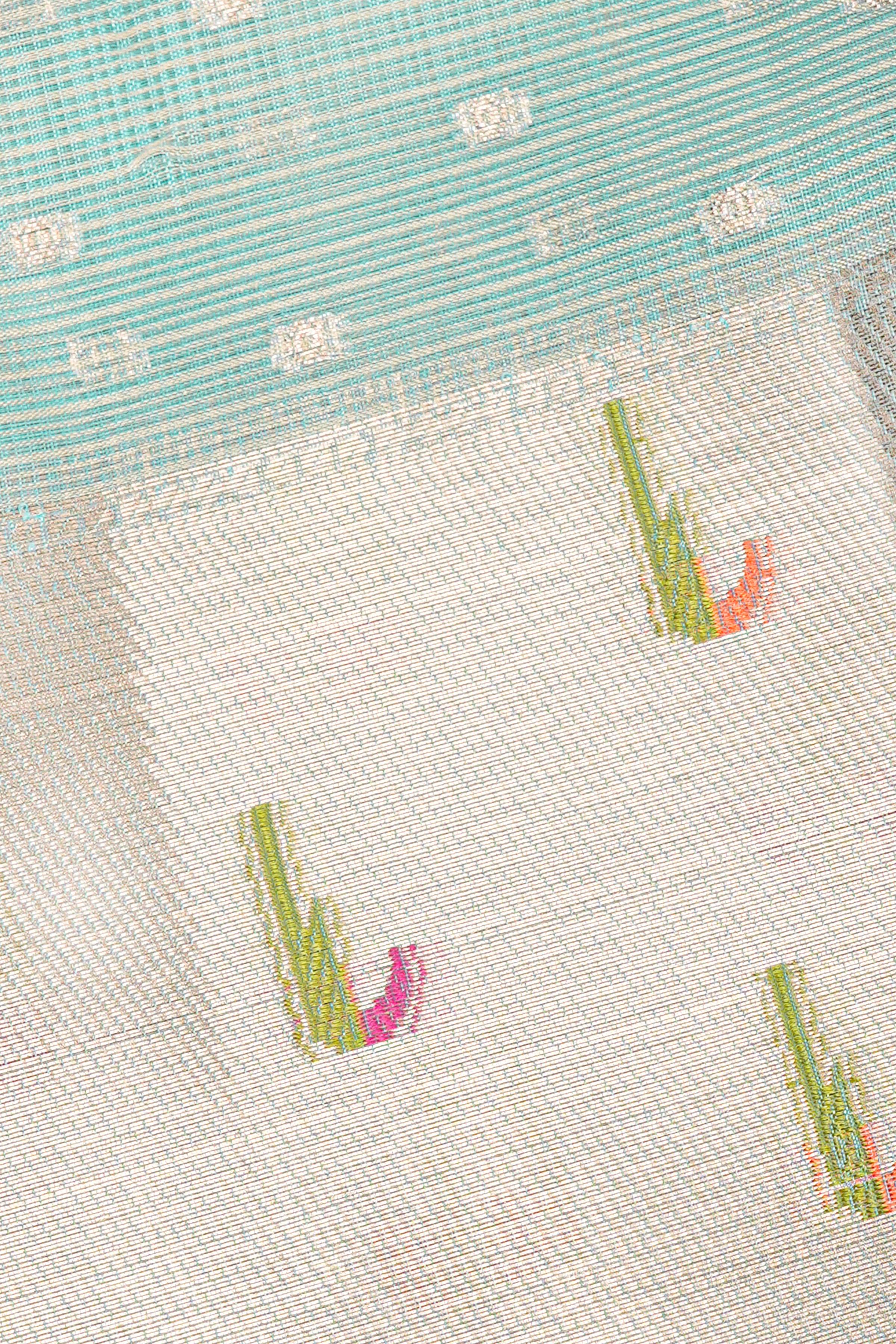 Latest LIGHT SEA GREEN BUTTIS KOTA Saree with MUNIYA BORDER border. This saree comes with CONTRAST KOTA blouse.